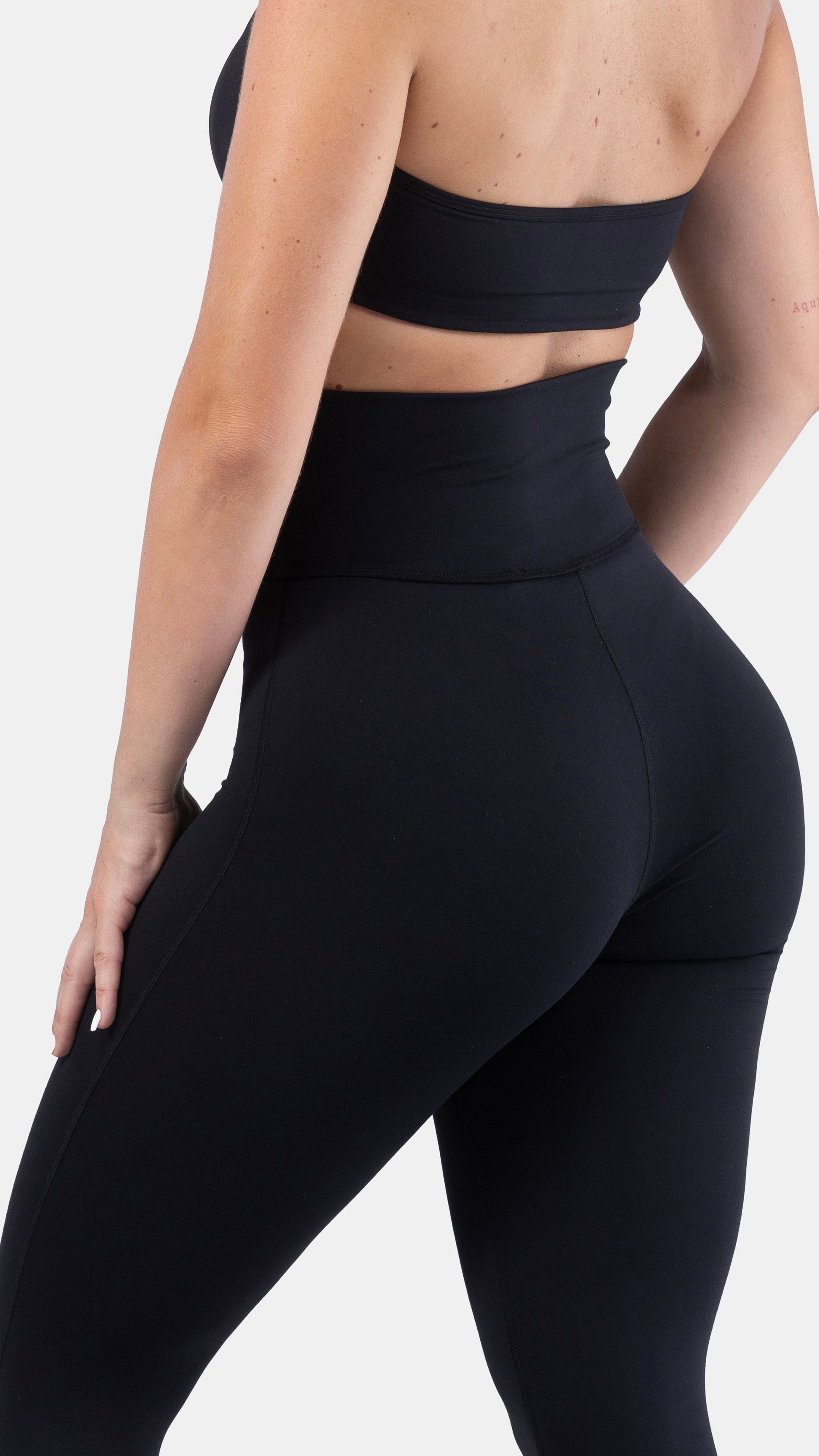 La brassière fine avec bretelles réglables assure une silhouette féminine et discrète, tandis que le legging taille haute sculpte sans comprimer.