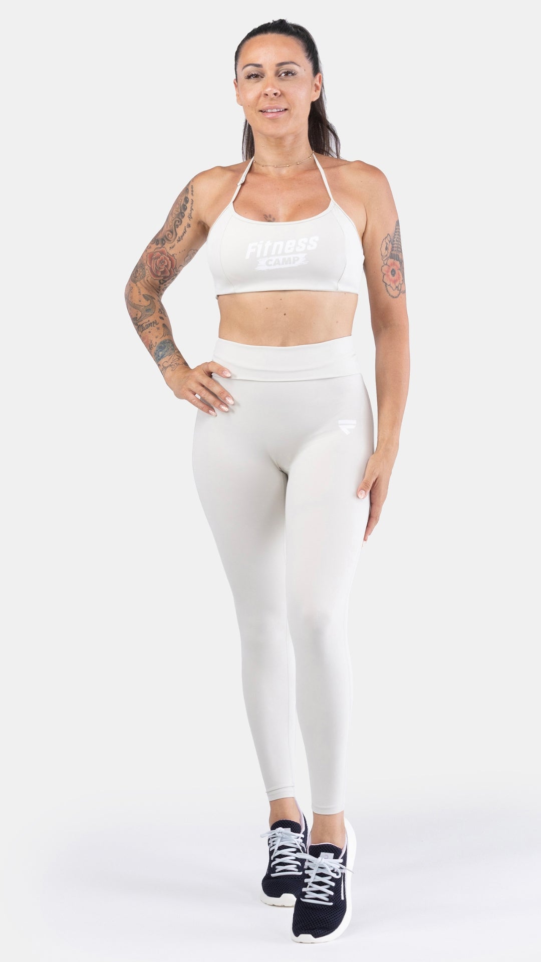 La brassière fine avec bretelles réglables assure une silhouette féminine et discrète, tandis que le legging taille haute sculpte sans comprimer.